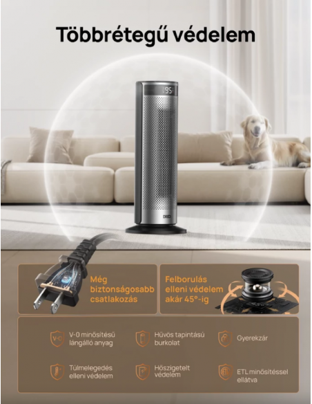 A DREO fűtők 8 biztonsági réteggel rendelkeznek – többek között túlmelegedés- és felborulás elleni védelemmel –, így a használatuk mindig biztonságos és megbízható.